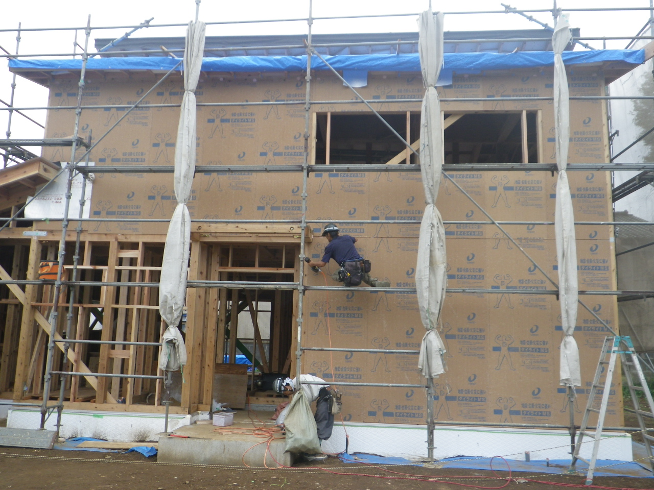 (2016年10月05日)いよいよ、外部作業の面材の施工が開始されました。