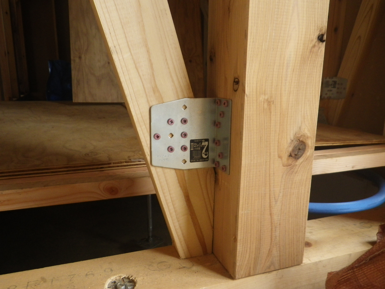 内部では、構造用金物の取り付けも進められています。