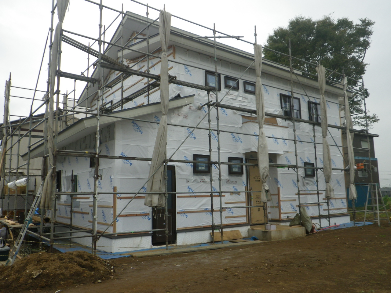 本日、外壁の透湿防水シートが施工されました。