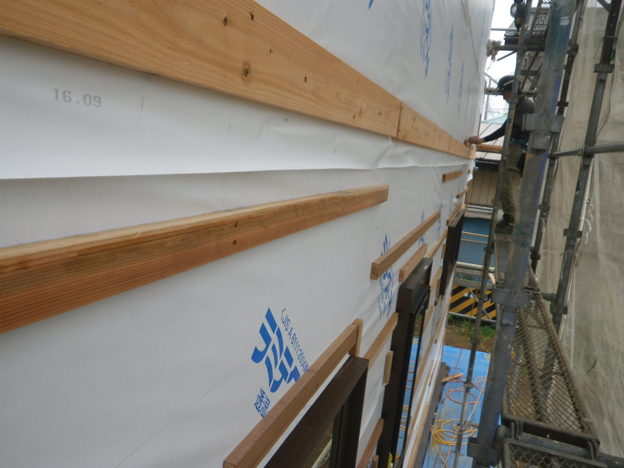 通気胴縁の施工が始まりました。