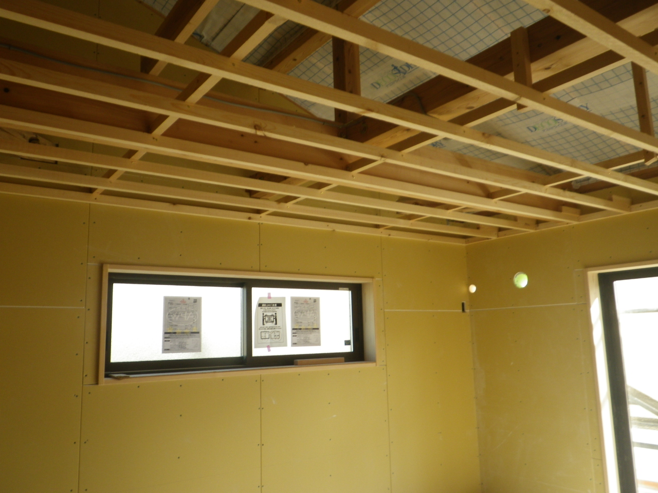 現在現場内では、外周部の石膏ボード張りと