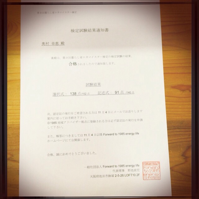 「暮らし省エネマイスター試験」の通知が届いてきました。